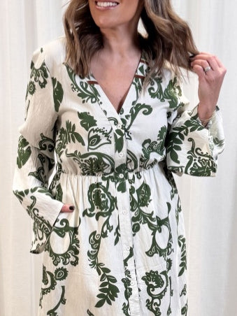 Beautiful Stories - Olive Bloom Dress - Beige/Green