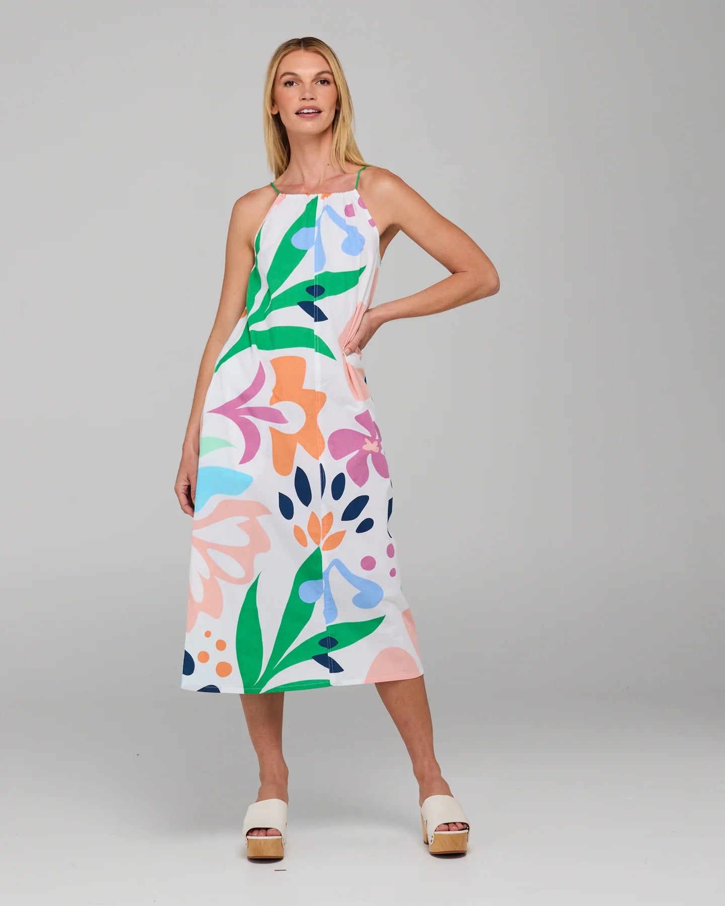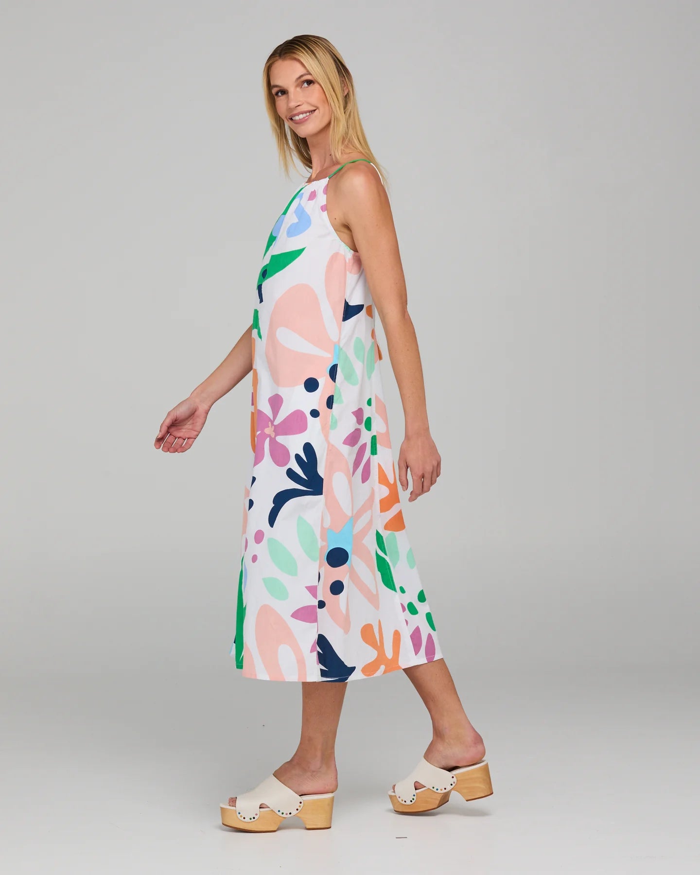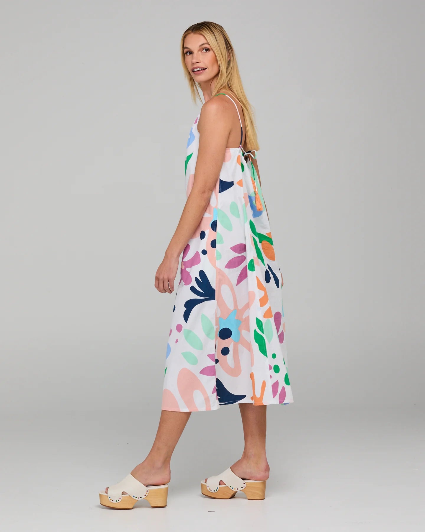 The Boom Shankar Aria Dress is a 100% cotton midi our playful Sorrento print. Your new maximalist summer fit!