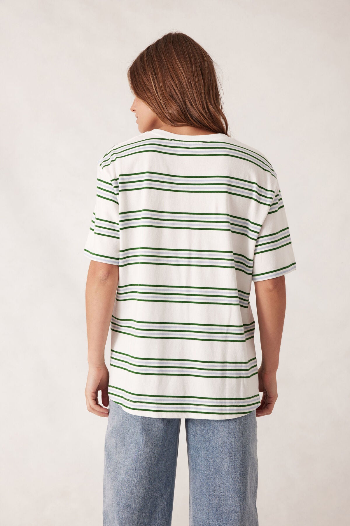 Ceres Life - Stevie Slouchy Tee - Vanilla / Green Retro Stripe