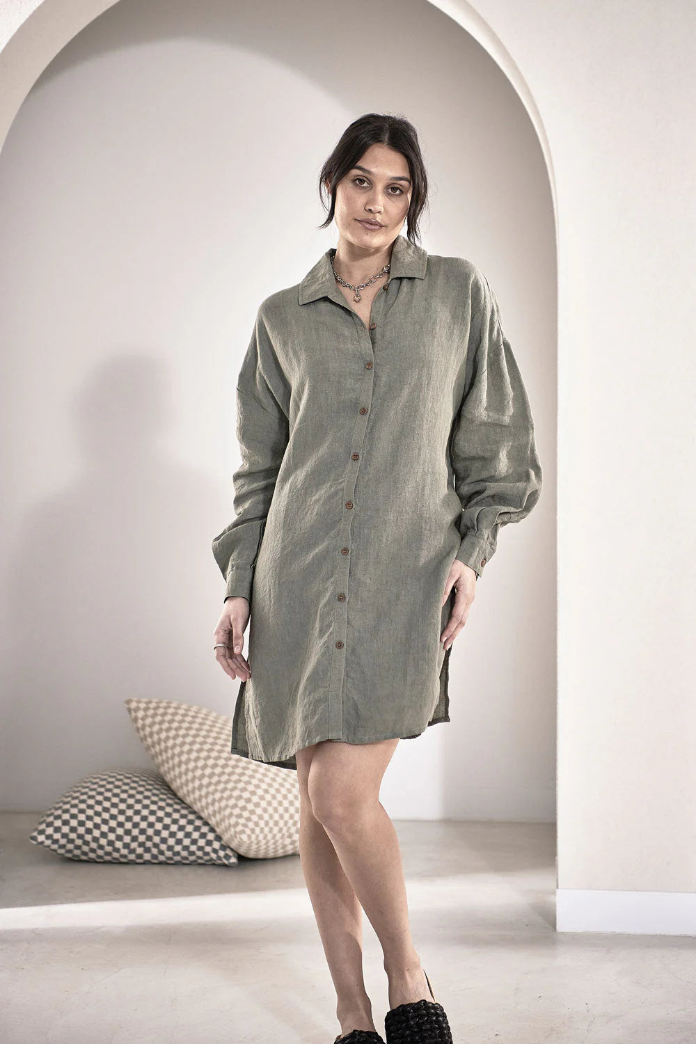 Eadie Lifestyle - Linen Shift Dress - Pistachio