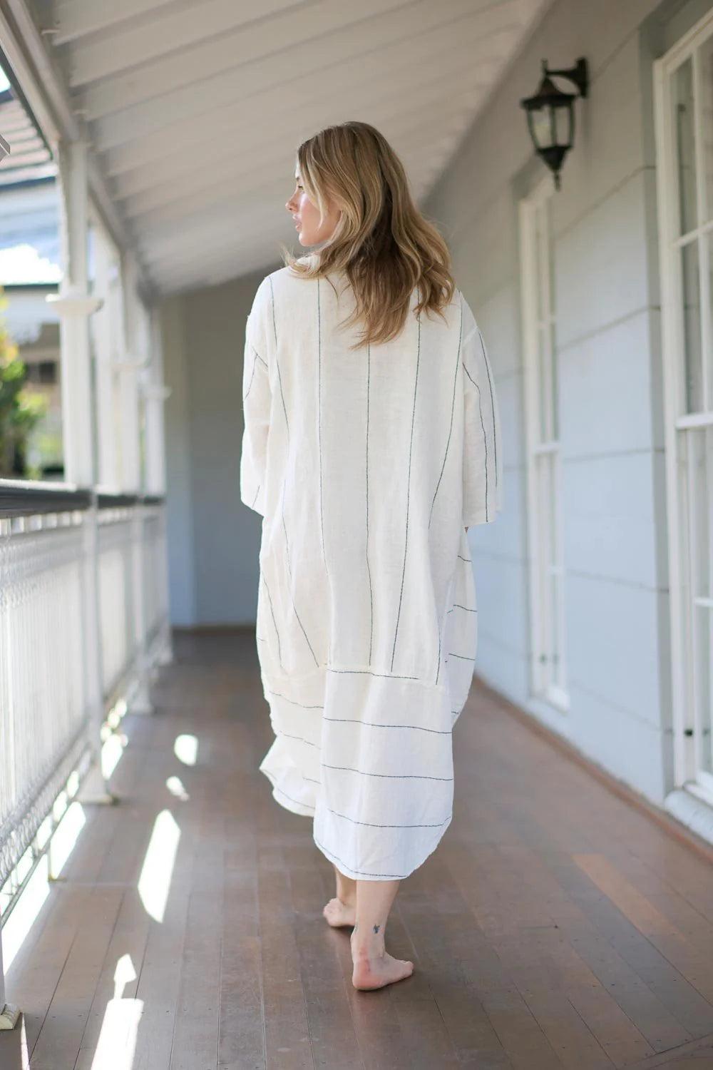 Eadie Lifestyle - The Carter Malle Linen Dress - Off White With Charcoal Stripe
