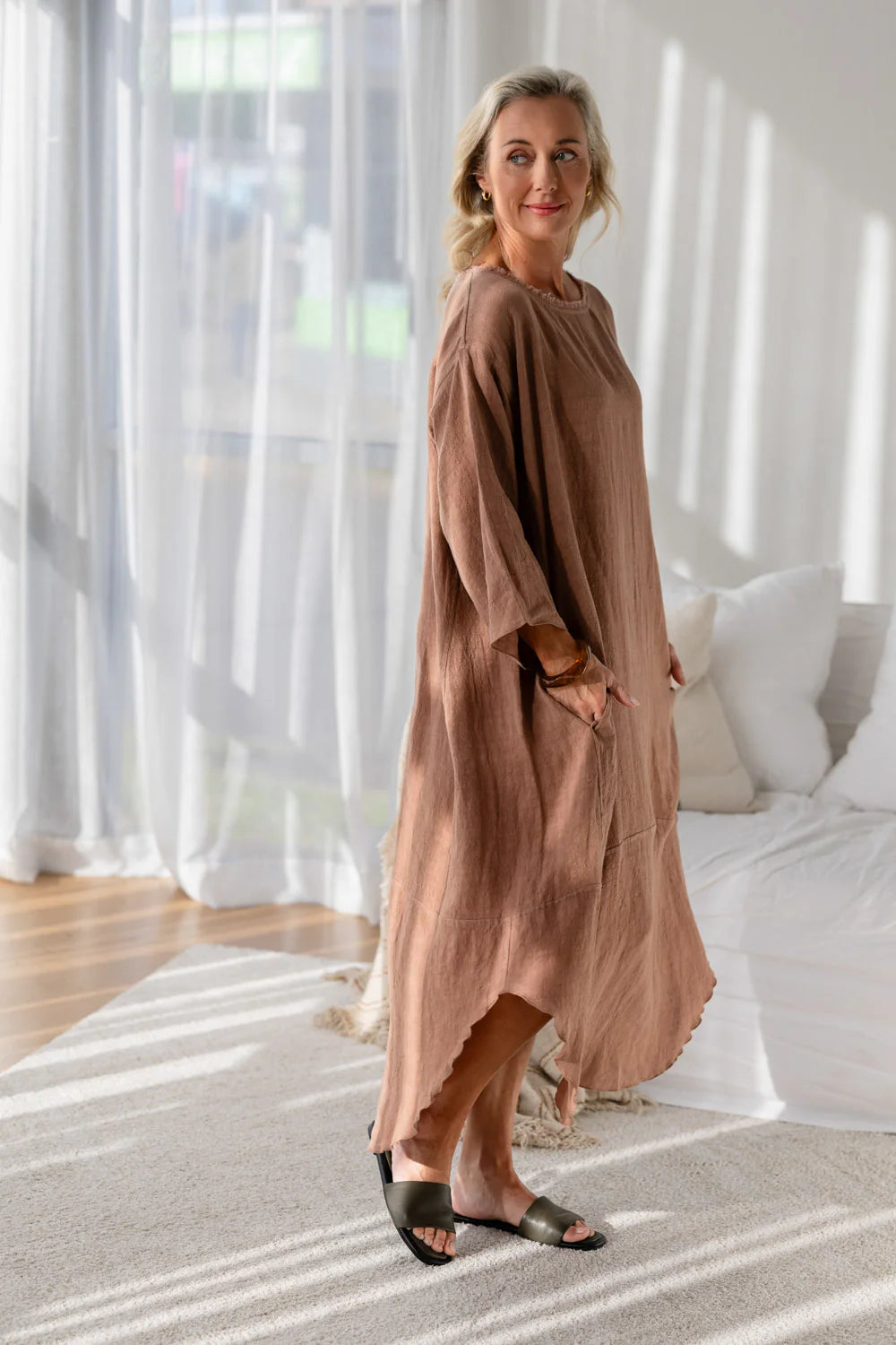 Eadie Lifestyle - The Malle Linen Dress - Clay