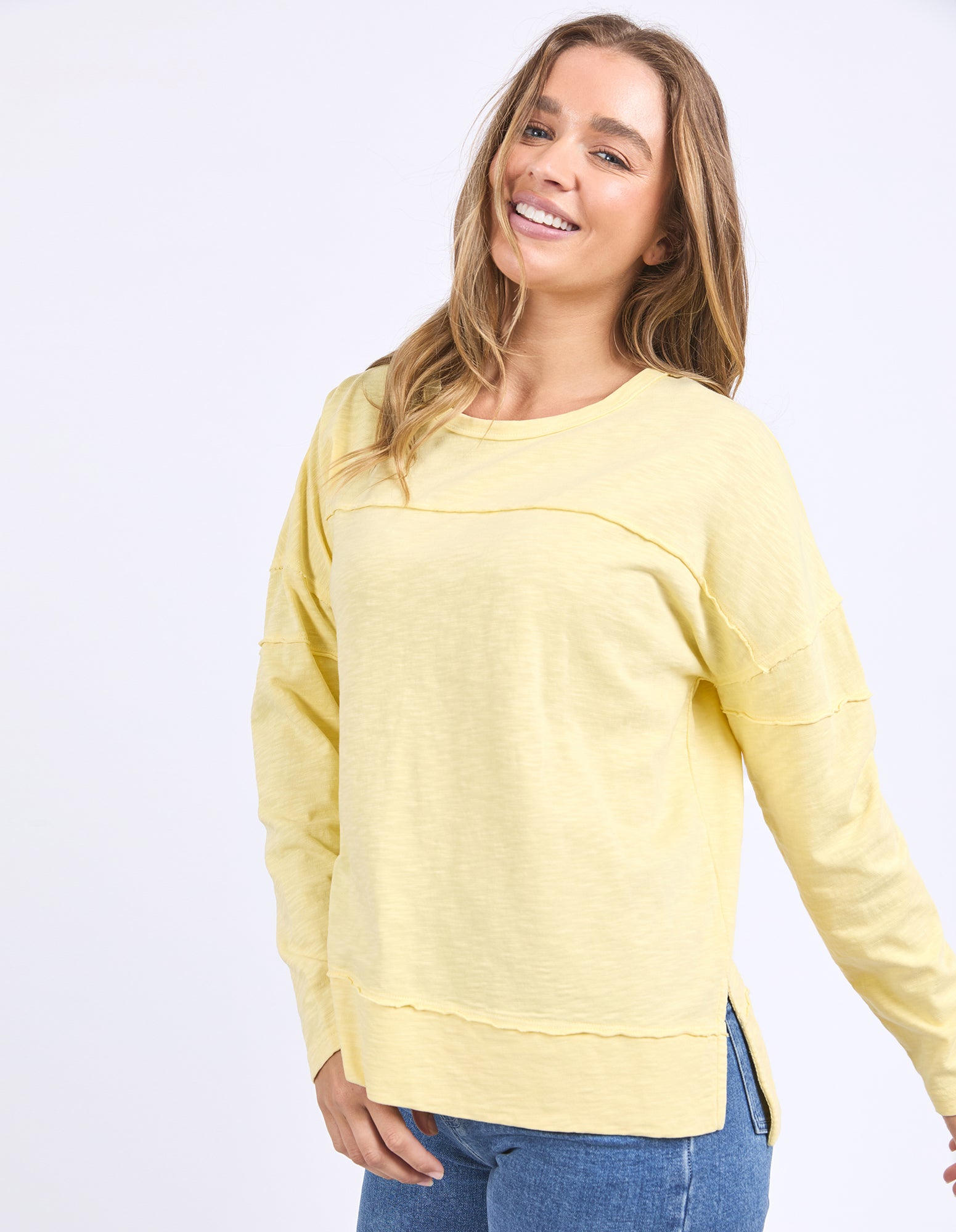 The Jayne Throw on Top is the perfect lightweight long sleeve to take you through the seasons. Cut from a comfy, cotton slub jersey this women's top features a crew neck, trendy exposed stitching and side split hi-low hem. Seriously versatile we know you'll be wearing this on repeat.