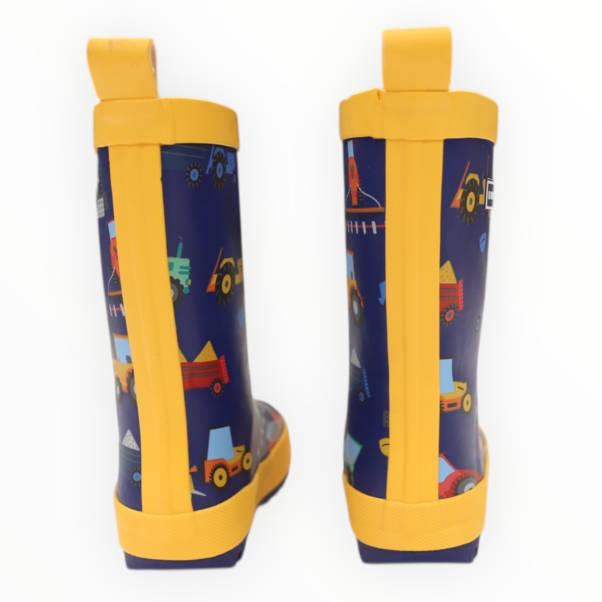 Rainy days are made for adventures! Korango’s On The Farm Gumboots feature a fun navy tractor print with bold yellow accents, perfect for little explorers. Designed with a soft cotton lining and durable rubber, these boots keep small feet warm and dry. The pull-on tab makes it easy for kids to gear up on their own, while the matte finish adds a stylish touch to every puddle jump.