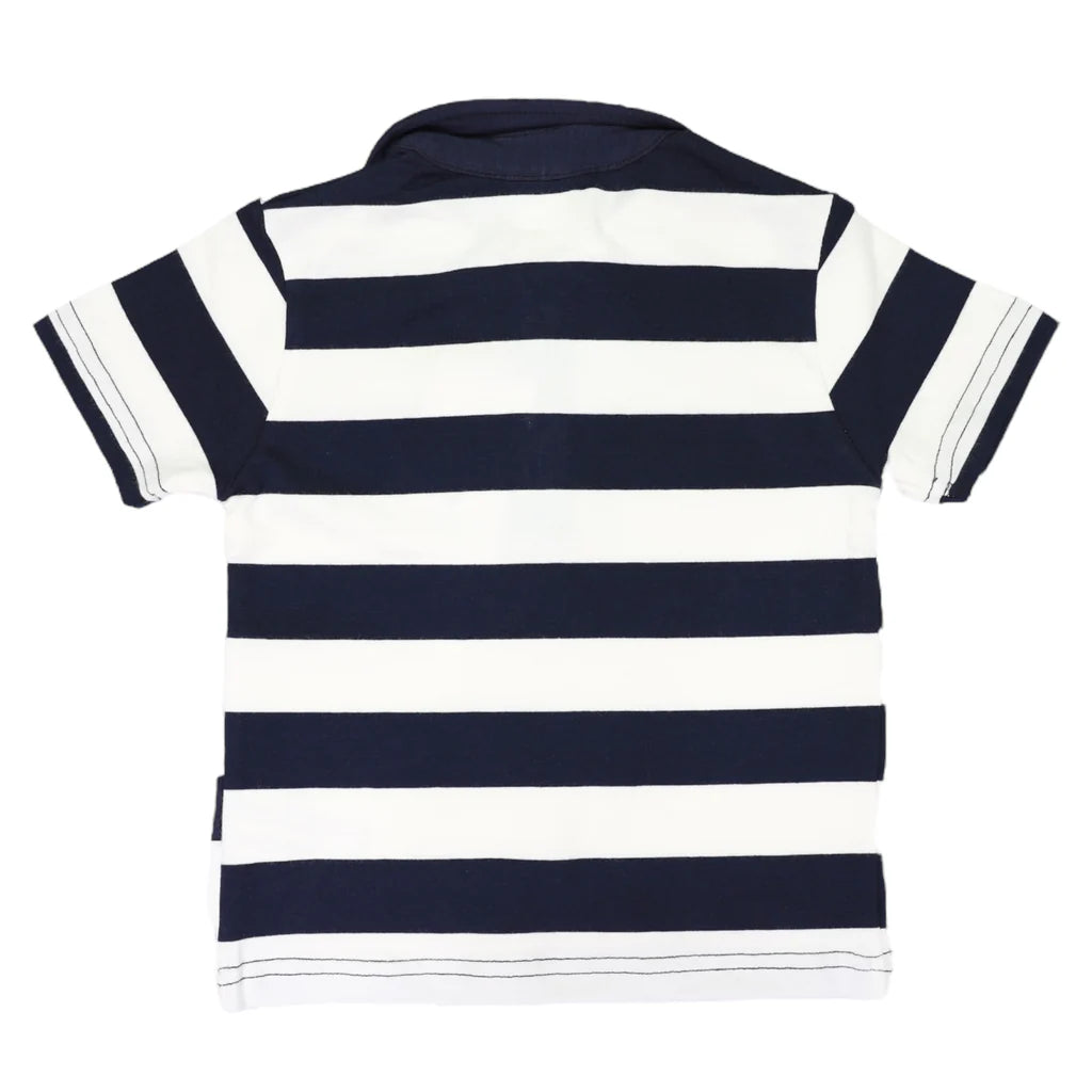 Looking for a classic look for your little one? Korango's Boys Navy Striped Polo gives him the perfect combination of style and comfort. The timeless navy and white stripes make it dressy enough for special occasions, while still keeping your boy's look relaxed. With a navy collar and wooden buttons on the front, this stylish piece is made from lightweight fabric that is soft to the touch. Perfect for little boys who love to run and play! Treat your son to the perfect outfit with Korango boys Navy Striped polo.