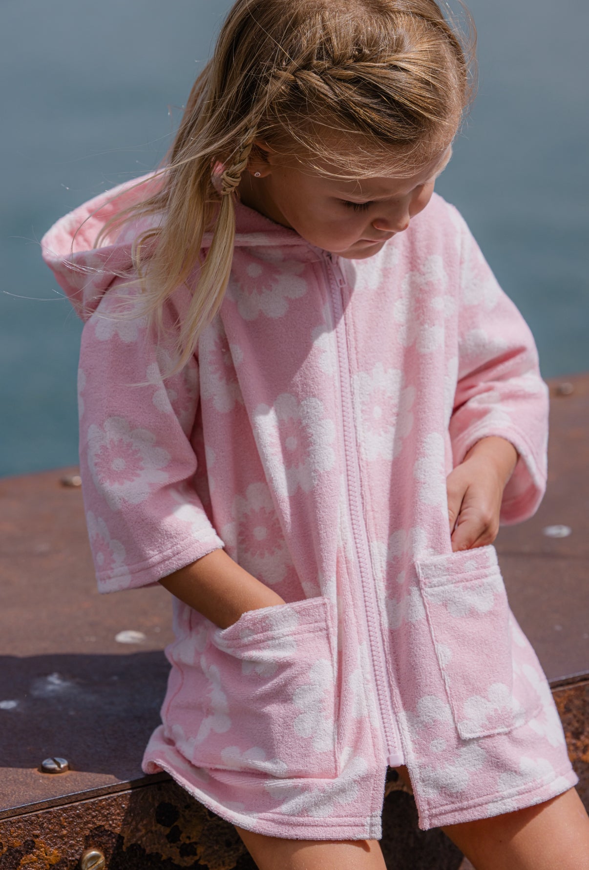 Milky Clothing Floral Terry Towelling Cover Up is your new go-to for poolside hangs and beachside adventures. Made from classic absorbent terry towelling in a sweet pink and off-white flower print, it’s perfect for throwing on after a swim. With a cosy hood and full-length front zip, it’s easy to slip on and go, no towel needed! This is the new towel. Wrap them up, zip them in, and they’re dry, warm, and ready for the next adventure.