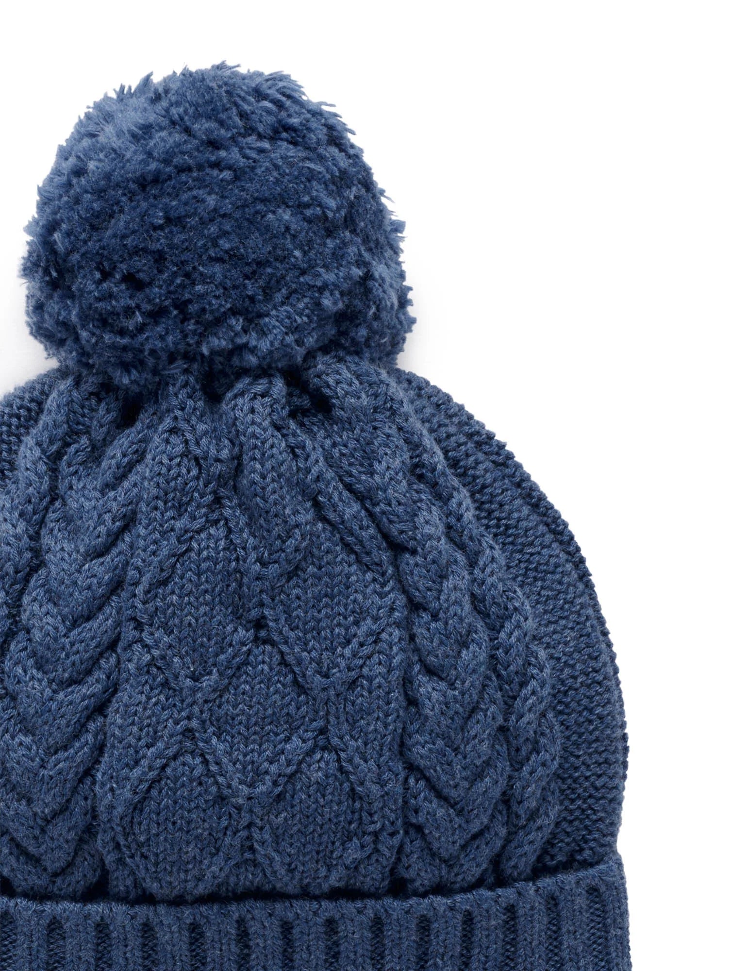 Our Cable Beanie, knitted in a chunky cable stitch, is a warm and cosy winter style. Featuring a large fun pom pom, it is the perfect accessory to complete any outfit. Made from soft organic cotton yarn with a touch of wool, this is a comfortable hat that won't itch.
