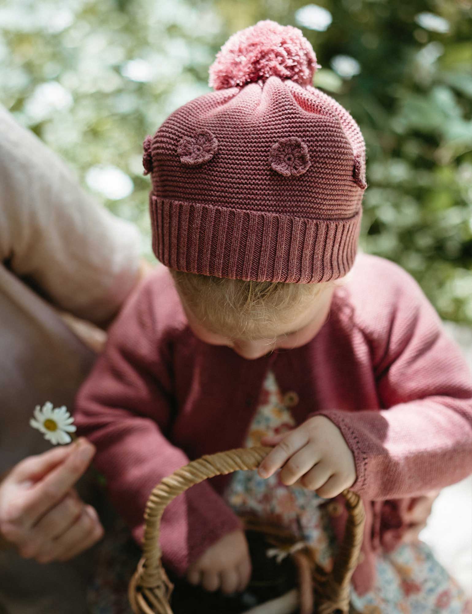 Our Crochet Flower Beanie, knitted in a thick stitch, is a warm and cosy winter piece. Featuring a fun pom pom detail and sweet 3D crochet flowers, it is the perfect accessory to complete any outfit. Made in soft organic cotton yarn with a touch of wool, this is a comfortable hat that won't itch.