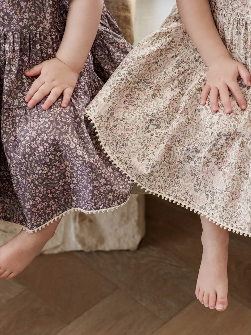 Say hello to our newest wardrobe favourite, the Eliza Floral Dress. Thoughtfully designed in two stunning shades, Indigo and Cream, this limited edition piece is perfect for twirling through sunny days. Made from soft, breathable cotton with delicate floral prints and sweet puff sleeves, it's as comfortable as it is charming. Whether it’s a family picnic, birthday party or a day of make-believe, your little one will feel effortlessly cute, cool and free to play all day. Care: Please cold hand wash separately before use. We recommend steaming or ironing inside out to protect the delicate design. Please check the care label for further instructions. SIZE CHART Sizing: this dress is designed to be a loose fit. We recommend sticking to your little one's usual size in this style for a flowy, comfortable feel. Please view our sizing chart below for measurements. Would not suggest sizing up.